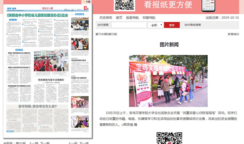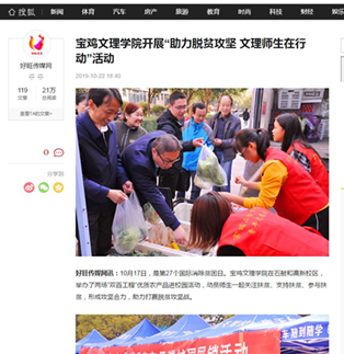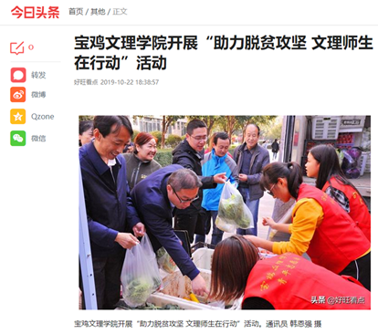 近日,bat365开展“助力脱贫攻坚 文理师生在行动”“闲物变爱心”等活动,分别被《今日头条》《搜狐网》《三秦都市报》等多家媒体报道。(党委宣传部 文、图/韩恩强 审核/冯飞龙)
