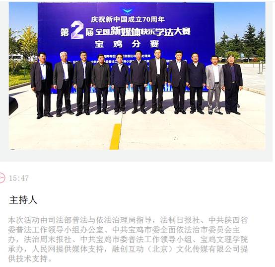 2、10月17日 快乐学法趣味普法 全国第二届新媒体快乐学法大赛宝鸡分赛举行