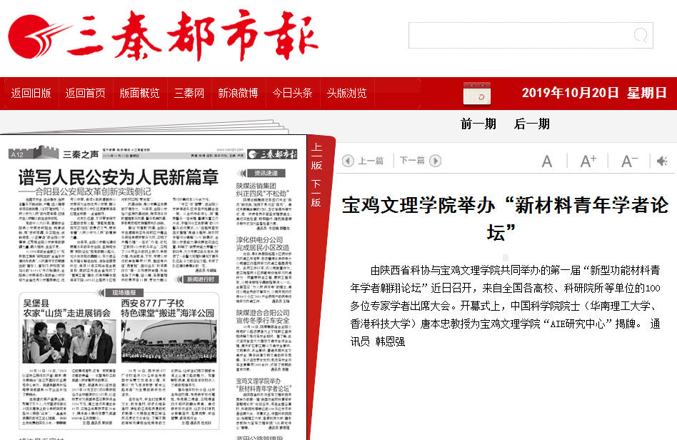 2、10月20日12版 bat365在线中国官网登录入口举办“新材料青年学者论坛”
