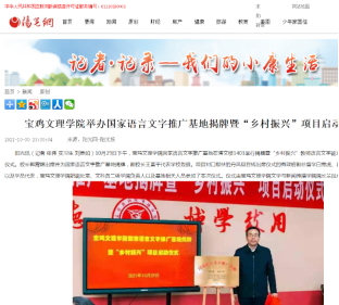近日,bat365获批国家语言文字推广基地、大学生志愿者服务特奥会、“红色课堂”进校园等活动引起学习强国、宝鸡新闻网、三秦都市报等多家媒体的广泛关注和报道。