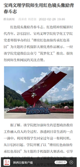 近日,bat365推进课程思政创新建设、师生话冬奥、用红色镜头激励青春斗志等活动引起中国教育报、学习强国、陕西日报、今日头条等多家媒体的广泛关注和报道。