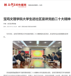近日,bat365大学生进社区宣讲党的二十大精神、举办就业洽谈会暨2024届毕业生就业实习双选会、优秀传统文化艺术周活动等,引起三秦都市报、今日头条、阳光网等多家媒体的广泛关注和报道。