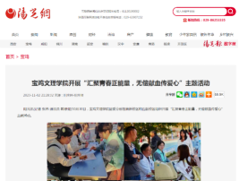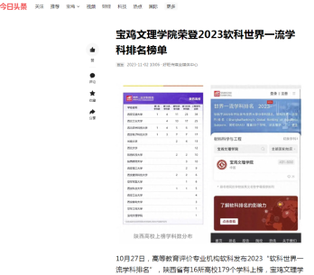 近日,bat365开展全国消防日活动、荣登2023软科世界一流学科排名榜单、无偿献血传爱心等活动,引起陕西教育厅网站、宝鸡日报、今日头条、阳光网等多家媒体的广泛关注和报道。