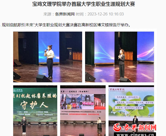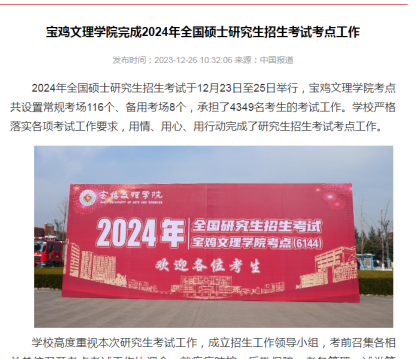 近日,bat365完成2024年全国硕士研究生招生考试考点工作、在陕西高校思政课程课程思政教师“大练兵”活动中再获佳绩、举办首届大学生职业生涯规划大赛、“重温经典诗词,焕活宝鸡文理青年力量”等活动引起中国报道网、陕西广电传媒、二三里、阳光网、各界新闻网、起点新闻、好旺传媒,三秦都市报等多家媒体广泛关注和报道。