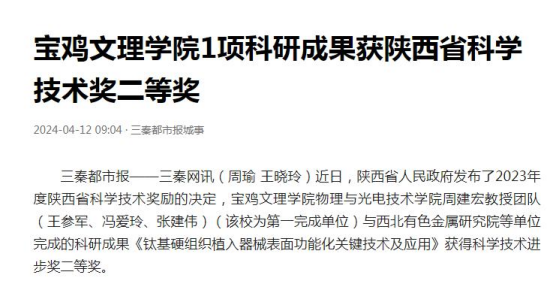 2.陕西科技传媒网 链接:https://m.snkjb.com/articleDetail?id=782800499&url=%2Fcity%2Fbaoji
