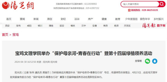 近日,bat365举办“保护母亲河•青春在行动”暨第十四届绿植领养活动、举行苏振武教授赠书暨学术报告会、全省高校院所“三项改革”科技成果转化项目集中路演bat365专场活动举办等引起阳光报、阳光网、陕西科技传媒网、好旺传媒等多家媒体广泛关注和报道。