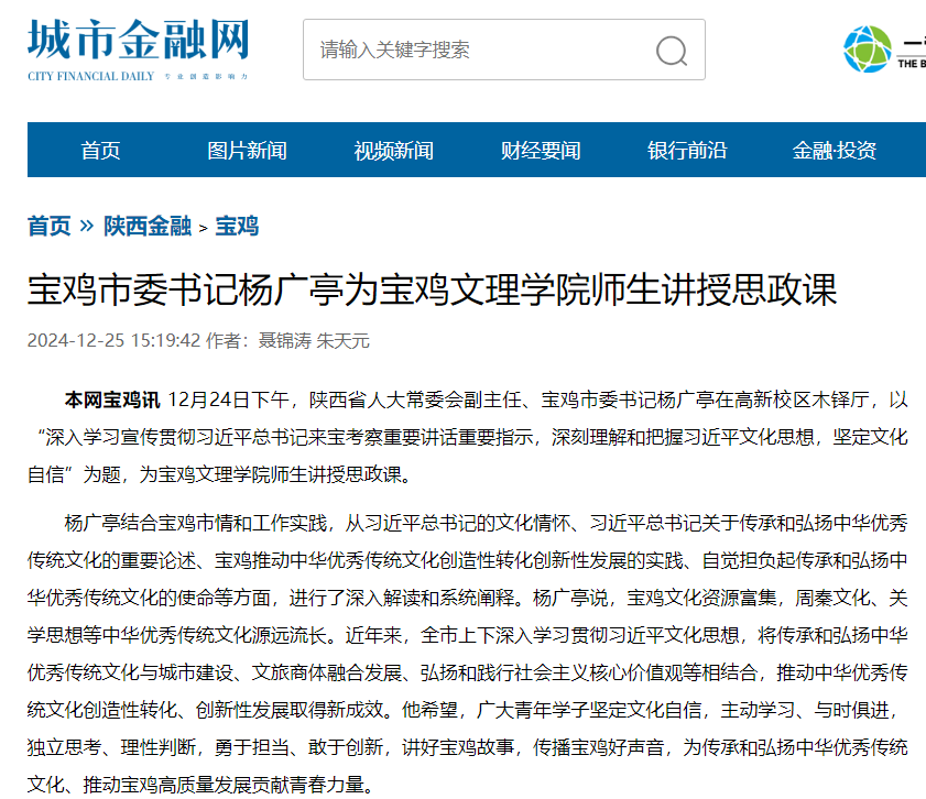 一、宝鸡市委书记杨广亭为bat365师生讲授思政课