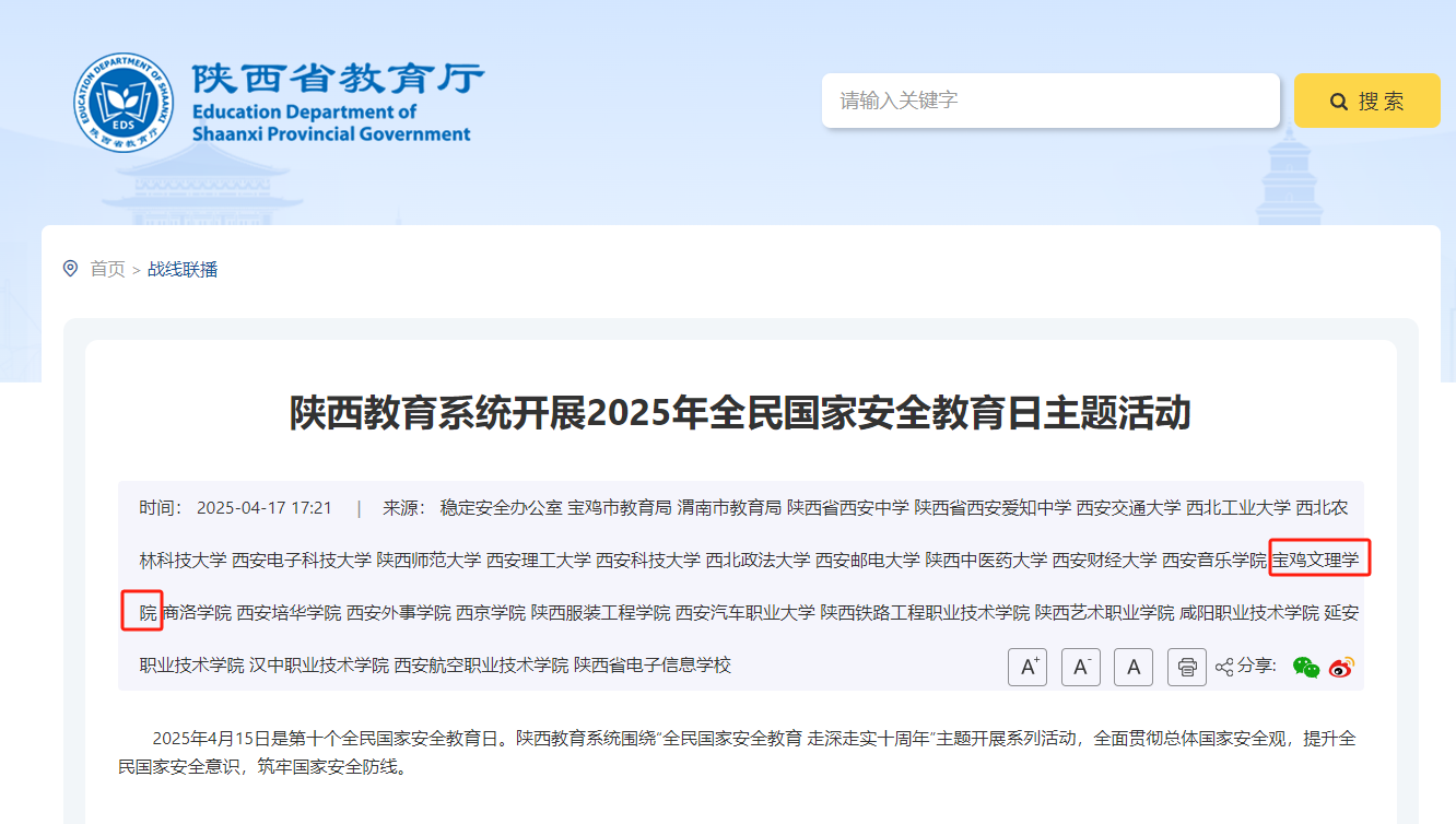 陕西省教育厅 链接:https://jyt.shaanxi.gov.cn/index/dsyw/202504/t20250417_3495103.html