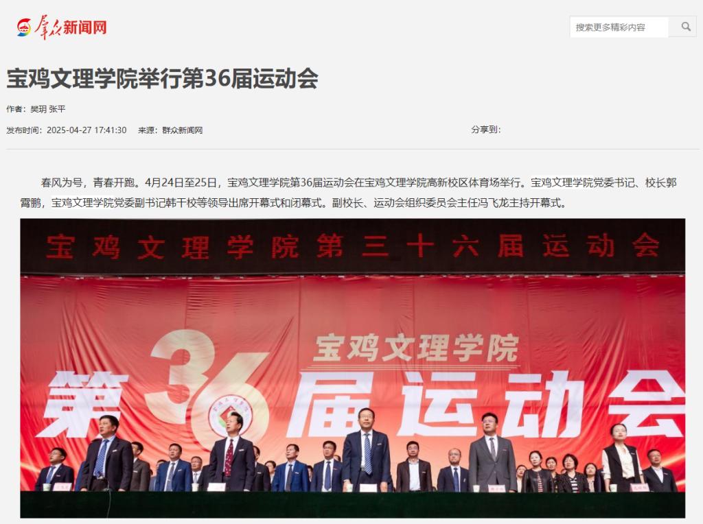 近日,bat365开展2025年全民国家安全教育日主题活动、联合宝鸡市新华书店举办“世界读书日”校园主题活动、举行廉政教育基地揭牌仪式、举行第36届运动会、举办第七届校园心理情景剧大赛等活动引起陕西省教育厅、阳光网、西部法治报、民生网、百度、今日头条等多家媒体广泛关注和报道。