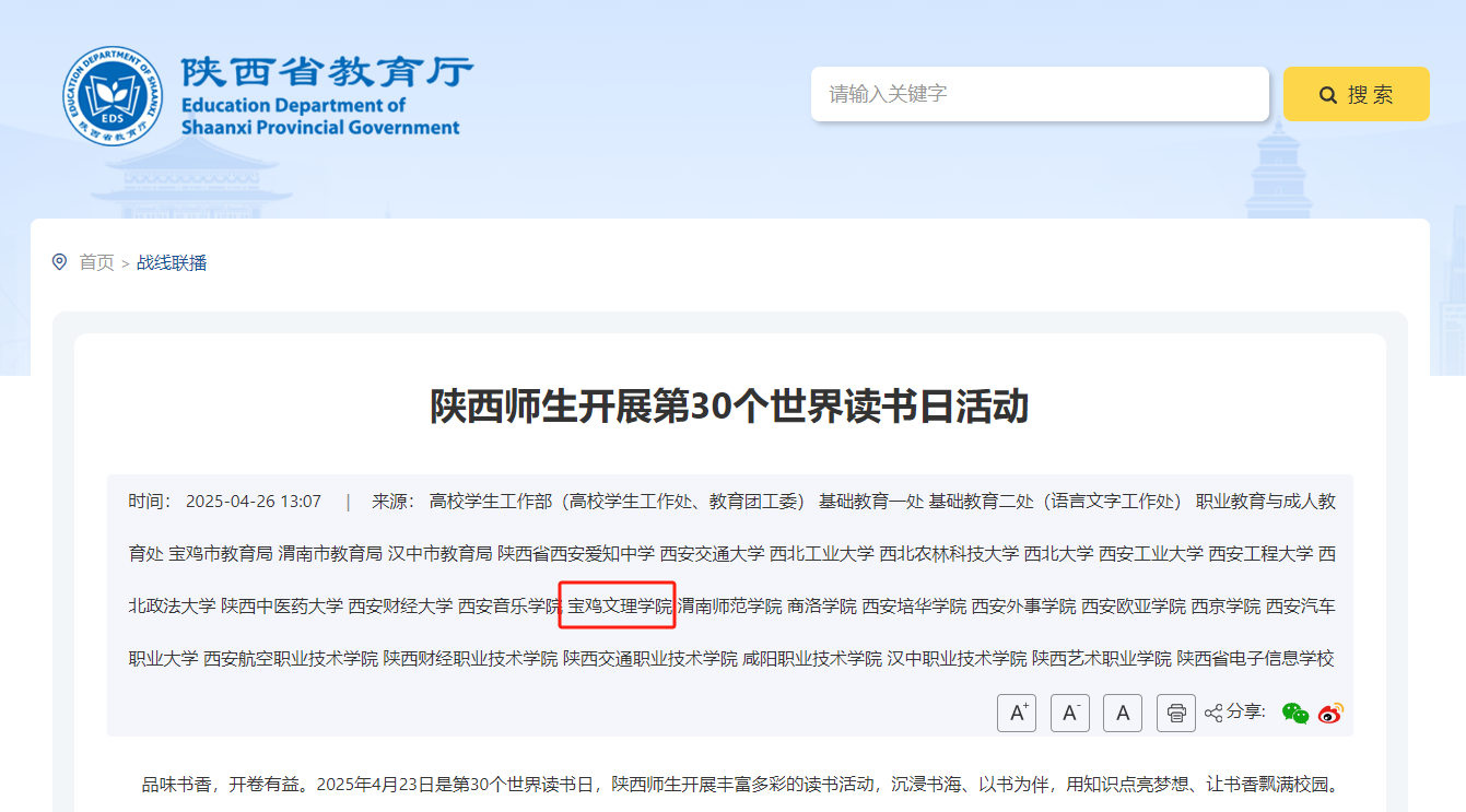 1.陕西省教育厅 链接:https://jyt.shaanxi.gov.cn/index/dsyw/202504/t20250426_3507394.html