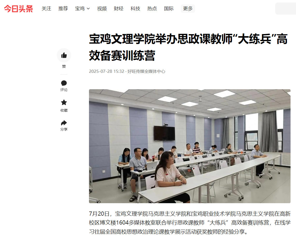 近日,学校推普助力乡村振兴服务队赴新疆温宿县柯柯牙镇开展志愿服务、召开第五届“面向未来:情感教育与人的全面发展”学术研讨会暨朱小蔓情感教育纪念论坛、校领导检查指导暑期重点项目建设情况、举办思政课教师“大练兵”高效备赛训练营、“青禾硕果”观察团暑期“三下乡”社会实践:科技强国之路的青春探索、开展“童心同梦”农村教育发展专项暑期社会实践活动、李伟教授参加国际比较文学学会第24届大会并作报告、王宏昌著作《非物质文化遗产的数字化传播研究》出版、孙新峰新书《话语的锋芒》面世等活动引起学习强国、阳光网、网易新闻、秦闻、掌上宝鸡、今日头条、百度等多家媒体广泛关注和报道。
