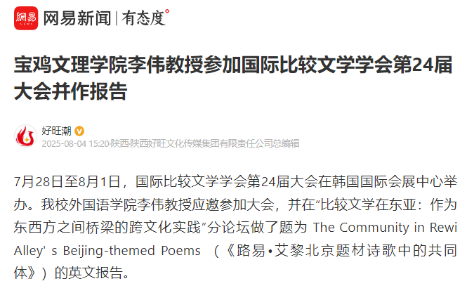七、李伟教授参加国际比较文学学会第24届大会并作报告