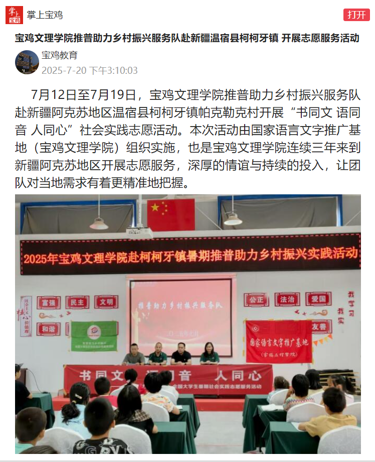 一、学校推普助力乡村振兴服务队赴新疆温宿县柯柯牙镇开展志愿服务活动