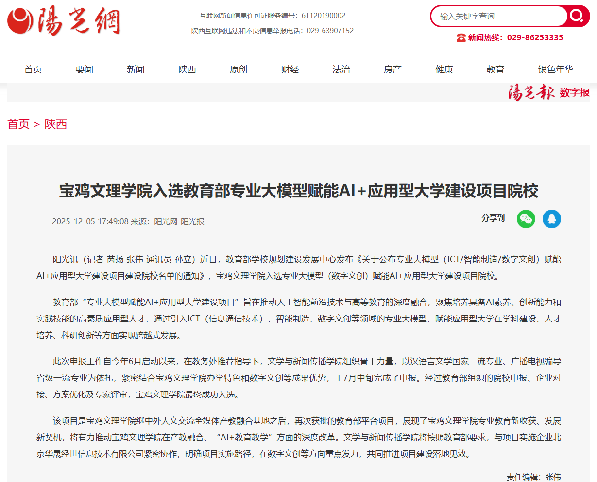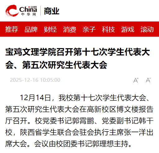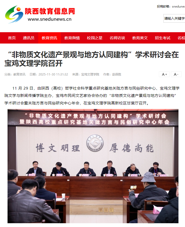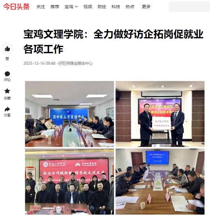 近日,学校召开第十七次学生代表大会、第五次研究生代表大会,入选教育部专业大模型赋能AI+应用型大学建设项目院校,全力做好访企拓岗促就业各项工作,“绿色无毒 法润三秦”百场行关中专场走进bat365,“非物质文化遗产景观与地方认同建构”学术研讨会在学校召开等活动引起陕西教育信息网、阳光网、三秦都市报、起点新闻、视界观、中华网、今日头条等多家媒体广泛关注和报道。
