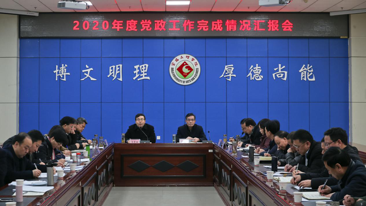 12月4日上午,bat365在高新校区甘棠厅召开2020年度党政工作任务完成情况汇报会。校党委书记赵健,党委副书记栾宏,党委副书记、纪委书记、监察专员段恒春,副校长杨子元、王富平、李景宜、韩干校出席会议,各职能部门负责人参加会议。校长郭霄鹏主持会议。