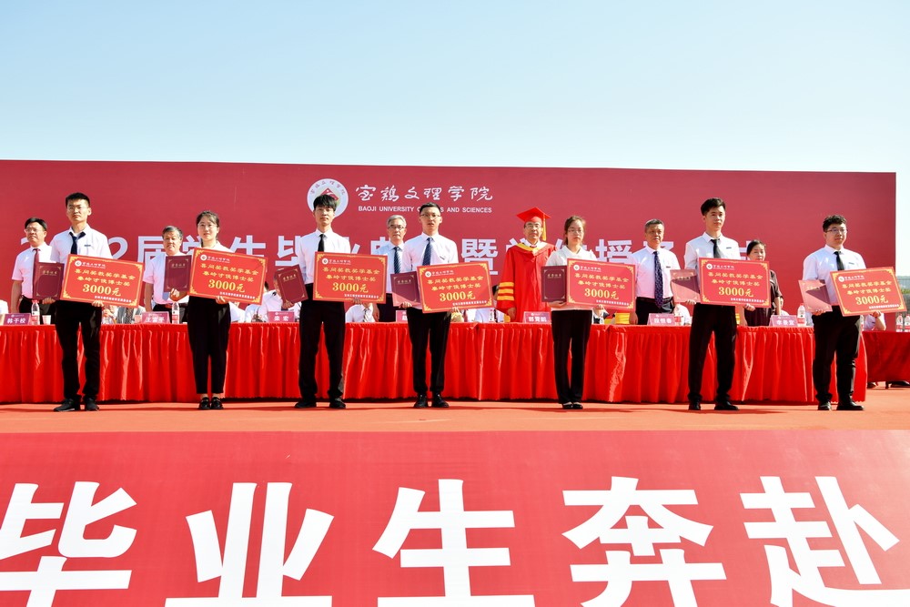 郭霄鹏指出,过去的几年里,2022届毕业生风雨兼程、不断突破,刻苦学习、全面发展,勇于创新、追求卓越,关爱同学、尊敬师长,无私奉献、热心公益,心系国家、感恩社会,以校为荣、爱校如家,是与新时代同向同行、共同前进的优秀青年,是有伟大创造力的青年,以奉献之姿书写青春之美,让前行的宝文理永葆勃勃生机,为奋进的宝文理增添了一道又一道夺目的光彩。他代表学校对同学们为学校发展作出的重要贡献表示衷心感谢。他向同学们提出三点希望:一要心系祖国,志存高远。希望同学们牢记习近平总书记“只有把小我融入大我,才会有海一样的胸怀,山一样的崇高”的教诲,与祖国共命运、与时代同步伐、与社会共进步,以青春之我、奋斗之我,践行“请党放心、强国有我”的青春誓言,将宝文理精神和“博文明理、厚德尚能”的校训内化于心、外化于行,为自己代言,为青春代言,为母校代言,到新时代的广阔天地中施展抱负、建功立业,争做“胸有大志、心有大我、肩有大任、行有大德”的新青年,让青春之花绽放在祖国最需要的地方。二要坚韧不拔,砥砺奋进。希望同学们不要被人生的无常和岁月的沧桑消磨掉奋斗的底色,在面对前进道路上的崎岖坎坷时,坚信“办法总比困难多”,始终保持昂扬向上的精神状态和一往无前的奋斗姿态,铸就坚韧不拔、不屈不挠的品格,在乘风破浪中开拓前进,在披荆斩棘中开辟天地,在攻坚克难中创造业绩,把生活施加的苛责改写成无愧于时代的人生华章。三要勤学苦练,增长才干。希望同学们牢记习近平总书记“梦想从学习开始、事业靠本领成就”的嘱托,时刻保持学习的热情,把学习作为穷其终生的首要任务,作为一种责任、一种精神追求、一种生活方式,夯实自己的知识基础,在不断学习中增长才干、丰富自我、提升素质,让勤奋学习成为不断进取的动力,让增长本领成为铸就梦想的基础。最后,郭霄鹏祝愿广大毕业生以梦为马,仗剑天涯,凌云壮志,再创辉煌。