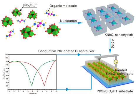 论文“Solvothermal Reaction and Piezoelectric Response of Oriented KNbO3Polycrystals”以可控有机溶剂为反应介质,采用两步溶剂热法在低温、短时间内制备了KNbO3压电多晶。探究了反应介质的碱度、粘度和极性对铌酸盐形成的影响,阐明了前驱体铌酸盐产物的化学反应机理和形成铌酸盐晶体的机理,揭示了不同反应介质中铌酸盐的相组成、形貌和晶格常数的调控机理。所得压电多晶体由定向的KNbO3纳米晶体构成的取向多晶,并首次检测到长方体KNbO3多晶的压电滞回线。本研究为取向KNbO3基压电材料的开发与应用提供了一种新的策略。(学科建设与研究生教育管理处、化学化工学院 文、图/周妮妮 审核/凡明锦、赵天绪)