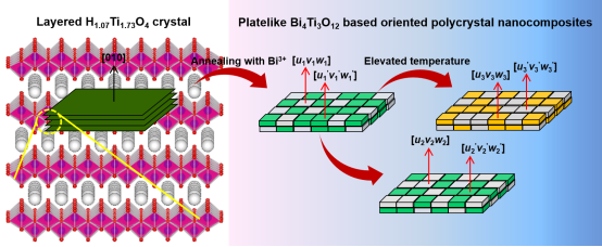 钛酸铋基材料在介电、压电、铁电、催化和储能等领域有着广泛的应用前景。该论文以二维层状H1.07Ti1.73O4·nH2O (HTO)晶体为前驱体,在HTO-Bi2O3和HTO-BiCl3两个反应体系中实现了钛酸铋基取向多晶纳米复合体的可控制备。该取向多晶与前驱体、中间体之间存在一定的晶体拓扑对应关系,其形成基于晶轴多变式拓扑化学介观转变机制。在形成取向多晶过程中,即使是同一种反应物,不同反应温度下所得产物的晶轴也会发生变化。这是由前驱体HTO独特的层状结构坍塌以及HTO晶体退火后中间产物的多样性造成的。本研究首次发现了取向多晶的拓扑化学转化过程中的晶带轴不连续性,进一步揭示了HTO晶体的新特性和纳米复合材料拓扑化学转化反应机制,可为钛酸铋基纳米复合材料的发展提供新思路。(学科建设与研究生教育管理处、化学化工学院 文、图/周妮妮 审核/赵天绪、凡明锦)