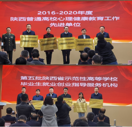 西北农林科技大学、西安电子科技大学、西安理工大学、延安大学和咸阳职业技术学院5所高校负责同志分别围绕学生工作和毕业生就业创业工作作了交流发言。省人力资源和社会保障厅副厅长李军、省征兵办副主任谷星林分别介绍了我省高校毕业生就业相关扶持政策和大学生征兵工作的相关要求。会议表彰了2016-2020年度陕西普通高校心理健康教育先进单位和第五批陕西省示范性高等学校毕业生就业创业指导服务机构,郭霄鹏代表学校上台领奖。