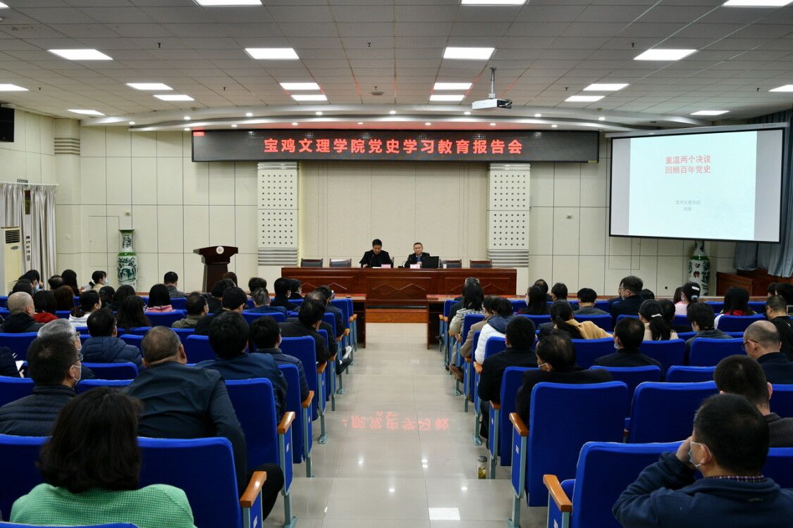 4月13日下午,bat365在高新校区木铎厅举办党史学习教育报告会,高强教授应邀作了题为《重温“两个决议” 回顾百年党史》的辅导报告。报告会由党委宣传部部长冯飞龙主持。