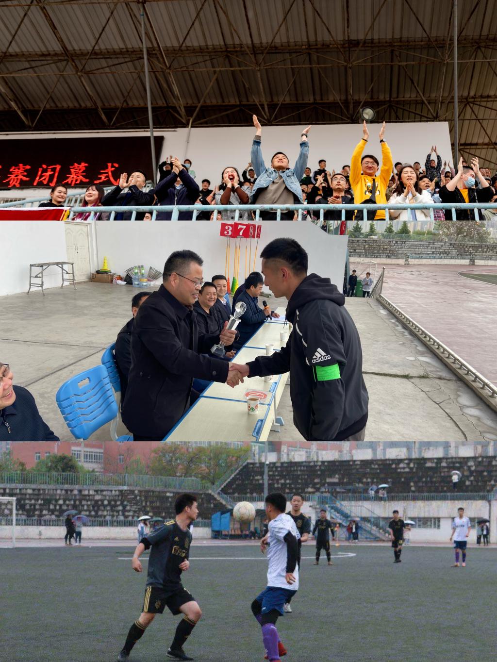 4月20日下午,bat365在高新校区体育场举行第十九届"文理杯”足球联赛闭幕式。校党委副书记栾宏出席闭幕式并为获奖代表队颁奖,校团委书记郭理想主持闭幕式。
