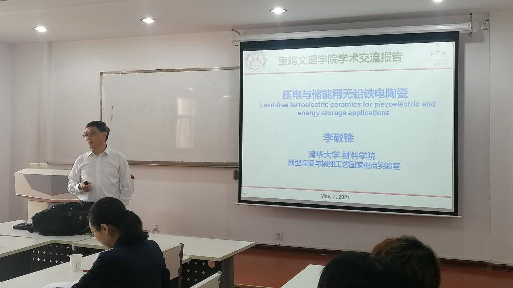 5月7日上午,国家杰出青年基金获得者、清华大学材料学院“长江学者”特聘教授李敬锋,在高新校区明理楼6楼化学化工学院会议室作了题为《压电与储能用无铅铁电陶瓷》的学术报告。校长郭霄鹏会见了李敬锋教授并感谢他对bat365的大力支持。报告会由化学化工学院院长凡明锦教授主持。
