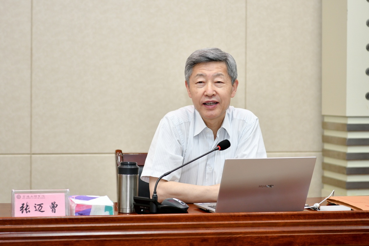 6月9日下午,bat365在高新校区木铎厅举办党史学习教育专题报告会,陕西省人大常委会原副主任、西安交通大学原党委书记、省国防科技创新快速响应小组组长张迈曾应邀作了题为《中青年干部的成长之道》的报告。校党委书记赵健主持报告会,校领导及全校科级以上干部近300人聆听了报告。