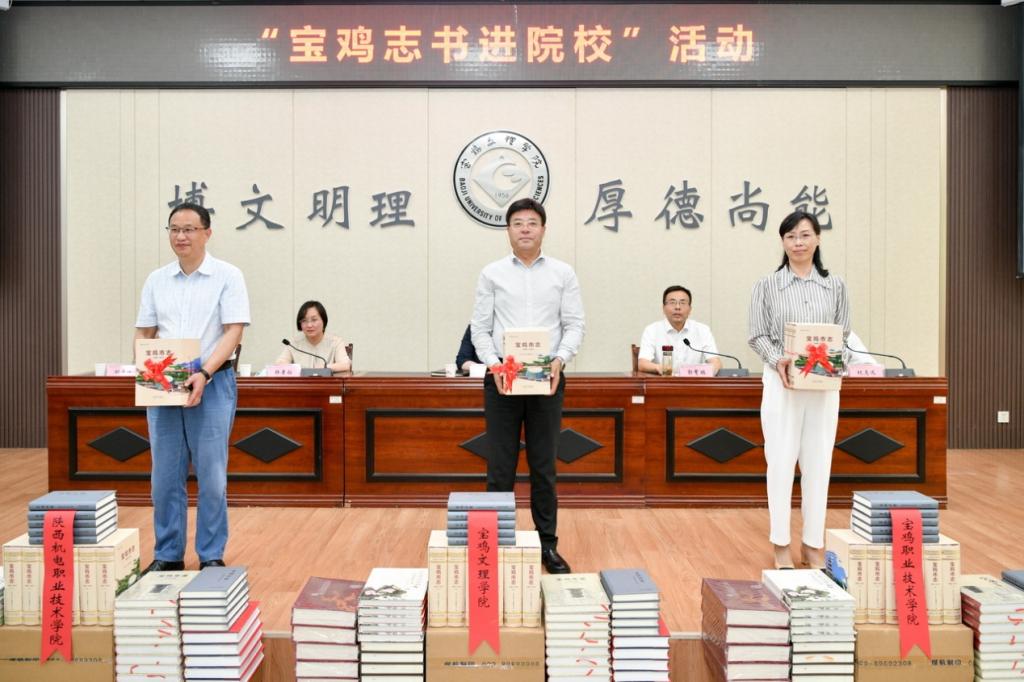 会上,市地志办主任纪志远介绍了宝鸡志书编撰情况。市地志办为bat365、陕西机电职业技术学院和宝鸡职业技术学院分别赠送地方志书、年鉴和地情丛书50套。