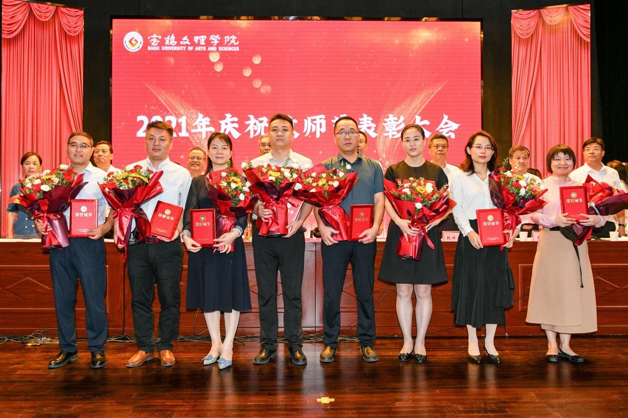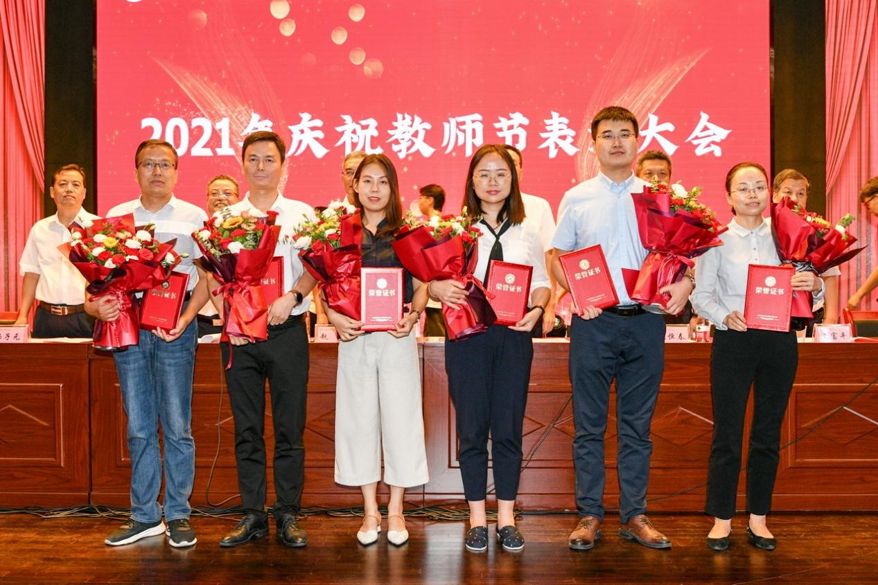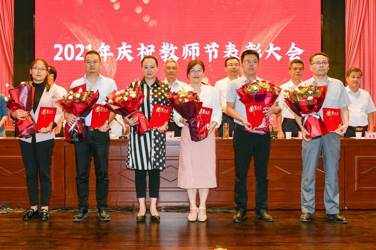会上,段恒春宣读了《关于表彰2019-2021学年“优秀教师”及 “最受学生欢迎十佳教师”的决定》;杨子元宣读了2020年度国家级一流本科专业建设点、陕西省一流本科专业建设点、陕西省一流本科课程、陕西省课程思政示范课程名单;王富平宣读了bat365在线中国官网登录入口第八届教学名师、本科教学质量优秀奖获得者名单;李景宜宣读了2020、2021年获批省级研究基地和国家级科研项目、陕西青年科技奖、陕西省青年科技新星获得者名单;韩干校宣读了《关于表彰从事教育工作满35年、30年、25年教职工的决定》。大会对获奖者进行了表彰,学生代表为受表彰的老师献花表达节日的祝福。