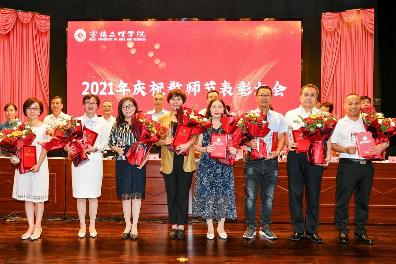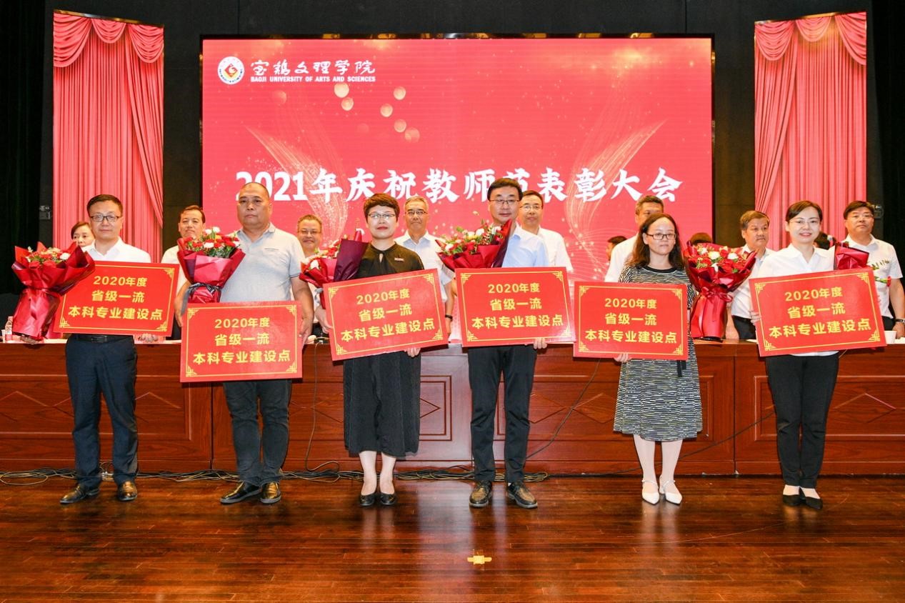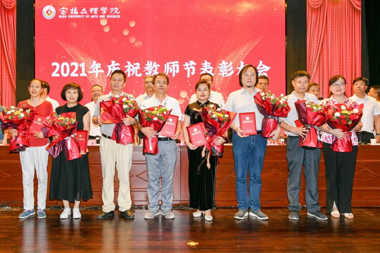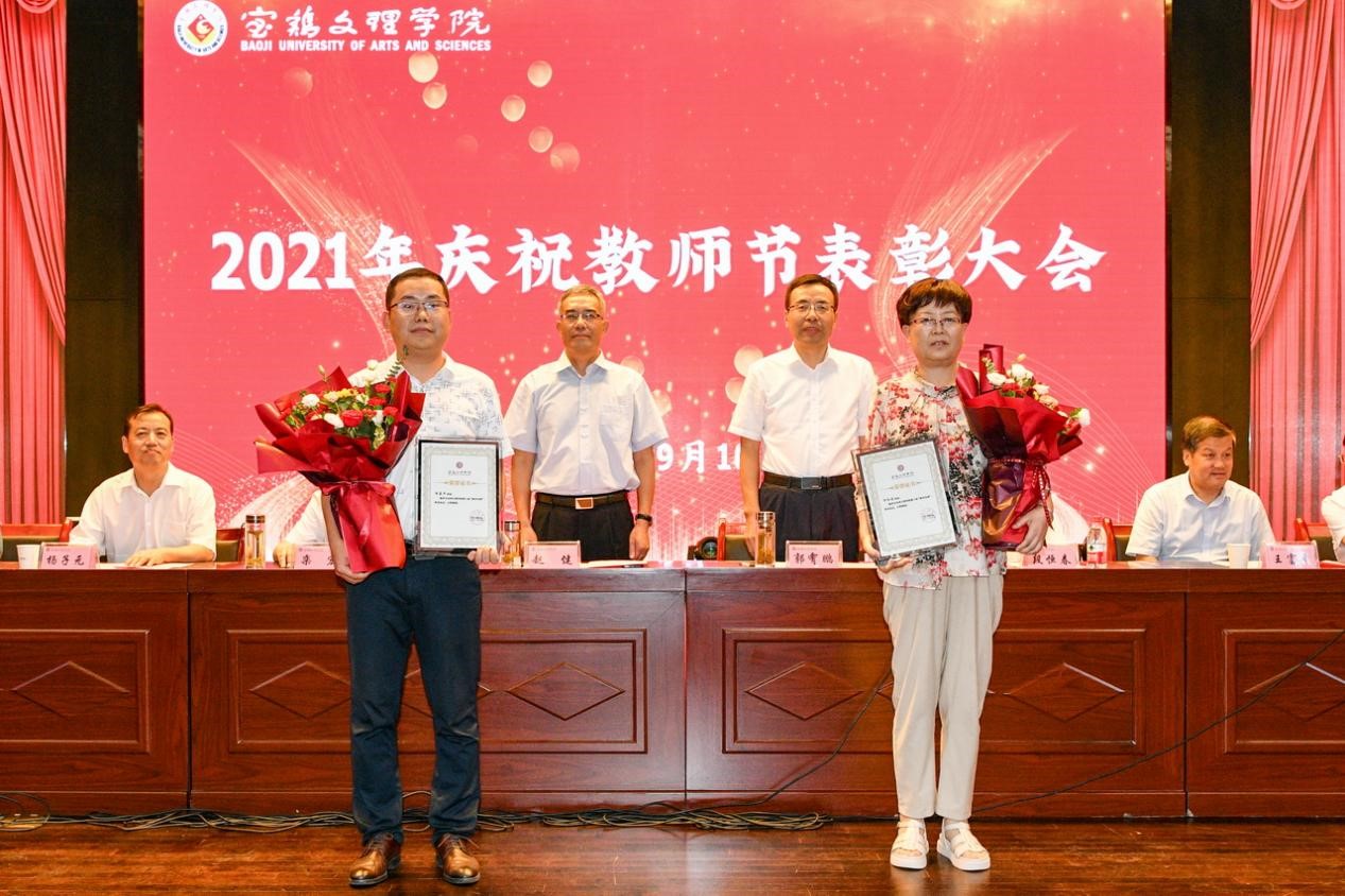 会上,段恒春宣读了《关于表彰2019-2021学年“优秀教师”及 “最受学生欢迎十佳教师”的决定》;杨子元宣读了2020年度国家级一流本科专业建设点、陕西省一流本科专业建设点、陕西省一流本科课程、陕西省课程思政示范课程名单;王富平宣读了bat365在线中国官网登录入口第八届教学名师、本科教学质量优秀奖获得者名单;李景宜宣读了2020、2021年获批省级研究基地和国家级科研项目、陕西青年科技奖、陕西省青年科技新星获得者名单;韩干校宣读了《关于表彰从事教育工作满35年、30年、25年教职工的决定》。大会对获奖者进行了表彰,学生代表为受表彰的老师献花表达节日的祝福。