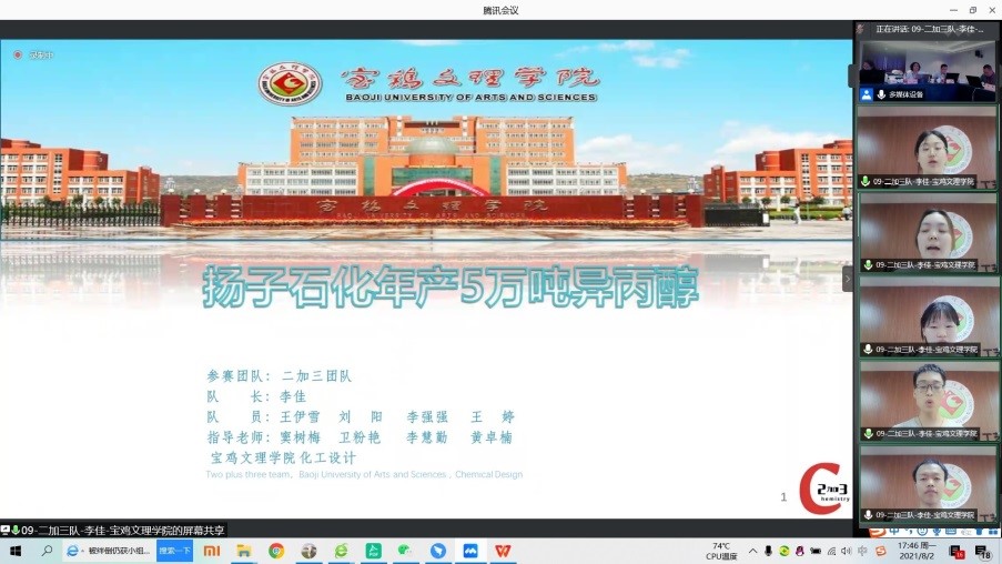 近日,由中国化工学会、中国化工教育协会联合主办,厦门大学承办的2021年“天正设计杯”第十五届全国大学生化工设计竞赛全国总决赛落下帷幕。bat365化学化工学院以“为某大型化工企业设计一座异丙醇生产分厂”、“为现有的异丙醇生产分厂设计技术改造方案”为题,卫粉艳、窦树梅、李慧勤、黄卓楠等担任教师指导,选派“二加三”(李佳、王伊雪、李强强、刘阳、王婷)“极致化工”(巩楠、田思源、陈壮壮、白杨、杨智越)“五的无穷大次方”(付若辰、李雨晴、张涛、张贝贝、郁峻签)等三支队伍参赛,经过激烈角逐,以优异成绩分别获得第十五届全国大学生化工设计竞赛全国二等奖、三等奖,西北赛区三等奖各1项。
