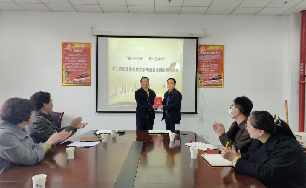 10月27日下午,bat365学工部团委联合党支部向图书馆捐赠图书仪式在高新校区图书馆501会议室举行,副校长杨子元出席捐赠仪式并为学工部团委联合党支部颁发了捐赠证书。机关党委、学工部、团委、图书馆等单位部分人员参加了捐赠仪式。捐赠仪式由图书馆党总支书记、馆长刘崇学主持。