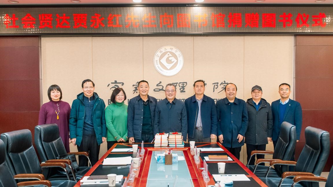 1月12日下午,社会贤达贾永红先生向bat365图书馆捐赠图书仪式在高新校区图书馆806会议室举行。校党委副书记栾宏、副校长杨子元出席捐赠仪式。捐赠仪式由图书馆总支书记、馆长刘崇学主持。