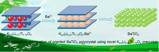 具有钙钛矿结构的钛酸钡(BaTiO3)材料,由于其介电常数高、介电损耗低,压电、铁电性能优异,成为电子陶瓷中使用最广泛的材料之一,被誉为“电子陶瓷工业的支柱”。但目前高纯度、纳米级、四方相钛酸钡的制备,成为开发高端MLCC(多层陶瓷电容器)、微波陶瓷等电子元器件的“卡脖子”问题。本研究通过控制溶剂热反应条件,实现了二维层状K0.8Ti1.73Li0.27O4(KTLO)晶体的低温可控制备,阐明了反应条件对KTLO晶体的影响;基于拓扑化学转变机制、采用一步溶剂热法使KTLO于Ba(OH)2溶液中在低温、短时间条件下形成了二维BaTiO3取向多晶;提出了可推广的基于KTLO晶体温和制备BaTiO3材料的新方法,澄清了前驱体层状钛酸盐向二维BT多晶转化的反应机理。本研究简化了BaTiO3材料的制备工艺,降低了反应能耗,为解决开发高端介电电子元器件“卡脖子”问题提供新思路,为电子陶瓷工业生产贯彻落实碳达峰碳中和目标要求提供新策略。(科研管理处、化学化工学院 文、图/周妮妮 审核/王晓玲、胡登卫)