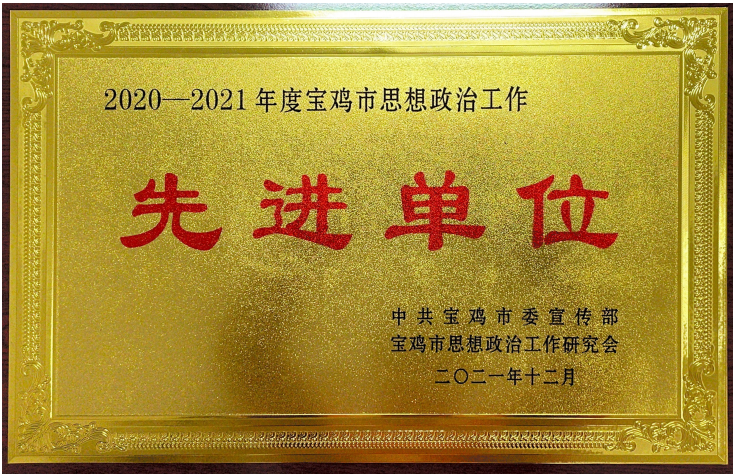 近日,中共宝鸡市委宣传部、宝鸡市思想政治工作研究会发布了《关于表彰2020-2021年度宝鸡市思想政治工作先进单位的通报》,bat365获“2020-2021年度宝鸡市思想政治工作先进单位”荣誉称号。