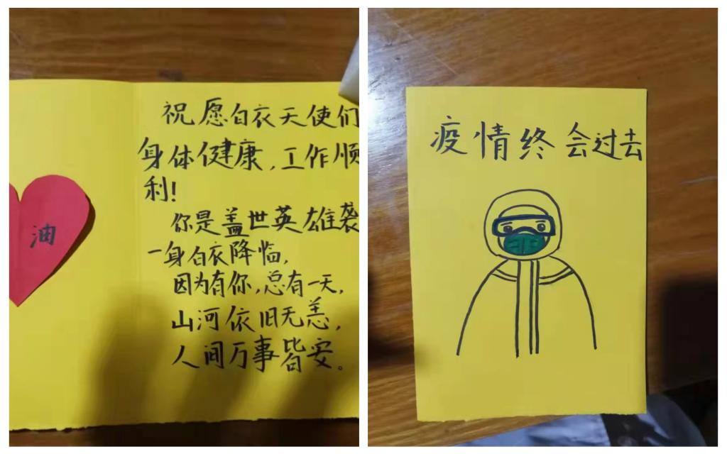 连日来,校医院的“大白”们紧张地穿梭在校园与社区的各个核酸采集点,忙碌工作的身影让人无不动容。“大白”们的努力付出,也赢得了全校师生的一致好评,更有小朋友亲手制作了卡片,送上童稚而真诚的祝福和感谢。“大白”们的努力,是为了校园更安全,是为了师生更平安,也是为了“白衣天使”的使命与荣誉。(后勤管理处(后勤管理集团) 文/赵菊英、刘华丽、王夕顺 图/吕锐、李洁、谭宁宁、严芳 审核/张小龙)