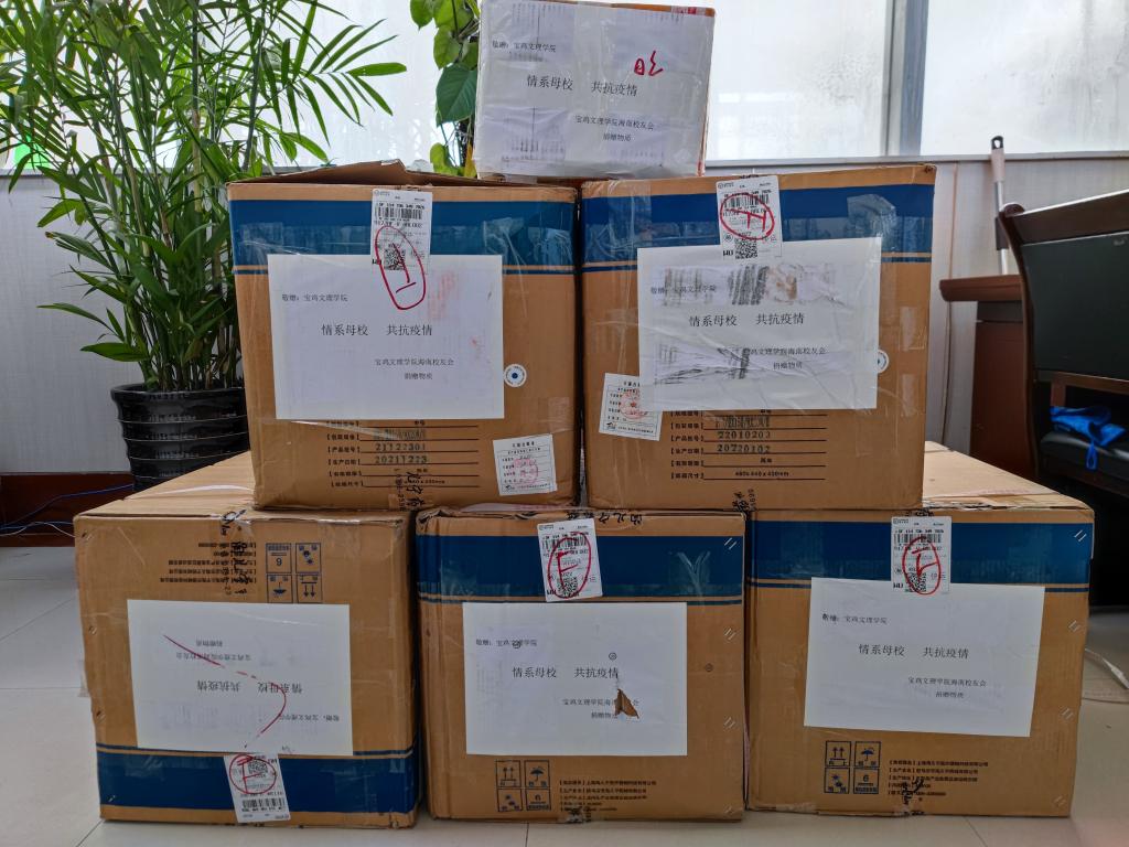 殷殷母校情,拳拳赤子心。3月18日,bat365海南校友分会捐赠的15550只医用外科口罩穿越千余公里来到宝鸡,外包装上的“情系母校,共抗疫情”格外醒目,这是第一个来自地区校友分会送达的爱心。