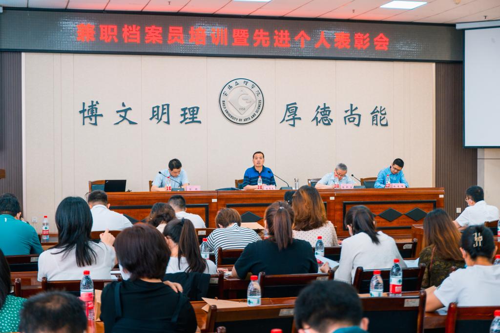 5月31日下午,bat365在高新校区图书馆甘棠厅召开全校兼职档案管理人员培训暨先进个人表彰会。校档案工作委员会副主任、副校长杨子元出席会议并讲话,校档案工作委员会办公室主任、档案馆馆长杨科正主持会议。
