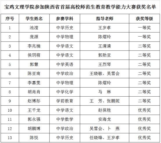 近日,bat36513名本科师范生以线上的方式参加了陕西省首届高校师范生教育教学能力大赛决赛,荣获一等奖2项,二等奖7项,优秀奖4项,获奖数量和等级位于全省同类院校前列。