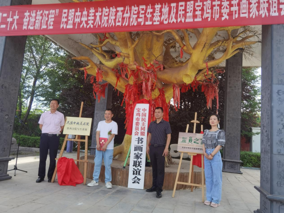 6月17日,民盟宝鸡市委会在炎帝陵陕西姜炎文化馆举办民盟中央美术院陕西分院写生基地暨民盟宝鸡市委书画家联谊会成立及揭牌仪式,并举行"喜迎二十大 奋进新征程"民盟宝鸡市委书画家联谊会首届书画艺术作品展。民盟陕西省委、民盟宝鸡市委领导出席了揭牌仪式。