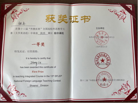 6月25-26日,第十三届“外教社杯”全国高校外语教学大赛(大学英语组)陕西赛区比赛在西北政法大学长安校区举行。陕西省多所高校的64名优秀英语教师参赛,bat365外国语学院教师张乐取得了综合英语组一等奖的优异成绩。