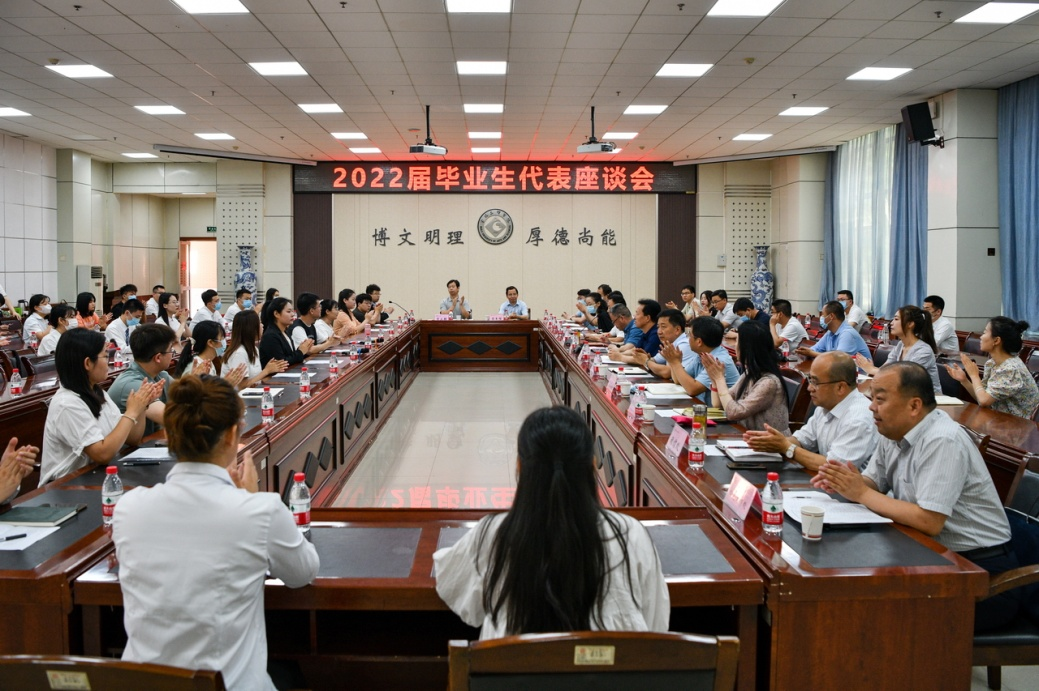会上,20名研究生、本科生毕业生代表依次交流发言,分享了在校期间的学习生活感悟,畅谈对未来人生的规划与展望,表达了对母校培养的感激之情,对恩师的感恩之心,并对学校教学、管理、服务工作提出了意见和建议。