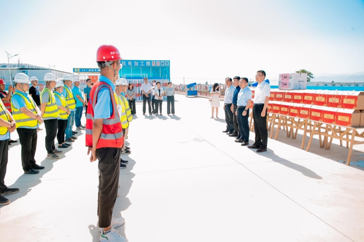 郭霄鹏代表学校对蟠龙校区全体建设人员表示亲切慰问,并感谢宝鸡市有关单位对bat365蟠龙校区建设的关心支持。他要求,施工单位要严格按照工作规范进行施工,保证工程顺利进行,同时要根据天气情况合理安排施工人员工作时间;监理单位要切实履行监管责任,既要监管工程质量和进度,更要监管工程安全和施工人员身心健康;蟠龙校区建设指挥部要加强与施工单位和监理单位的密切配合,强化统筹协调,加强施工现场管理,尤其要做好高温天气防护和疫情防控工作,确保工程质量、工程进度和施工安全。