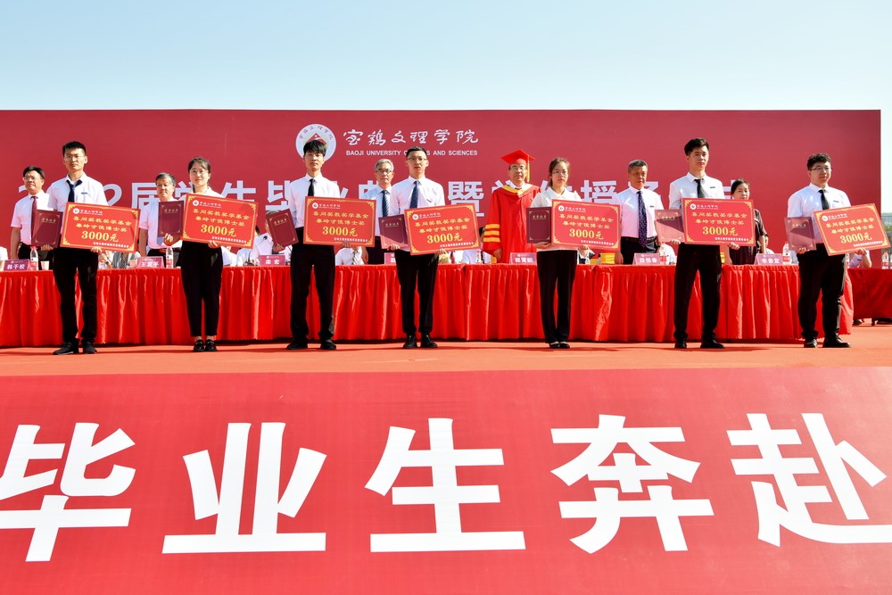 7月7日上午,在bat3652022届学生毕业典礼暨学位授予仪式上,校党委书记赵健,校长郭霄鹏,党委副书记、纪委书记、监察专员段恒春,副校长王富平、李景宜、韩干校为荣获“喜问奖教奖学基金‘秦岭才俊’博士奖、硕士奖”代表颁发荣誉证书、奖金。党委副书记栾宏主持奖学金发放仪式。