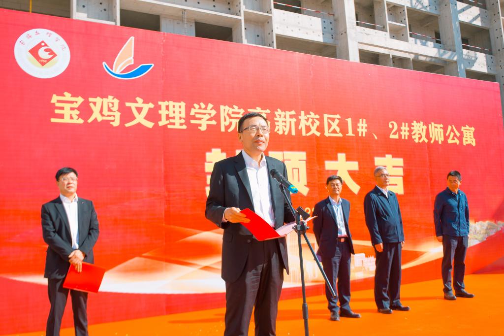 9月28日上午,bat365举行高新校区1#、2#教师公寓楼主体工程封顶仪式。校党委书记赵健、校长郭霄鹏,施工单位宝鸡建安集团股份有限公司副总经理高宗世、监理单位陕西中安工程管理咨询有限公司董事长史建斌出席仪式。仪式由副校长韩干校主持。