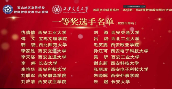 为深入贯彻落实习近平总书记关于教育的重要论述和高校思想政治理论课的重要讲话精神,进一步推动落实立德树人根本任务,充分发挥课堂教学主渠道作用,扎实深入推进高校思政课守正创新,西北地区高等学校教师教学发展中心联盟联合西安交通大学教师教学发展中心、西安交通大学马克思主义学院、全国高校思政课“手拉手”集体备课中心(西安交通大学)、超星集团,从6月份起开展首届西北联盟高校(本科类)思政课教师教学展示活动。活动分网络初评和决赛展示两个阶段,来自西北五省(区)43所高校的202名教师参加了此次展示活动。经过激烈角逐和网络评审,18名教师获一等奖、33名教师获二等奖、50名教师获三等奖。