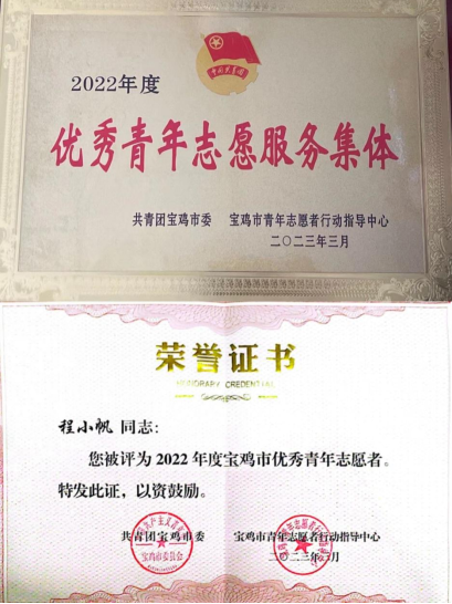 近日,共青团宝鸡市委、宝鸡市青年志愿者行动指导中心联合印发了《关于认定2022年度宝鸡市优秀青年志愿服务集体和优秀青年志愿者的决定》,bat365音乐学院“小音符”青年志愿者协会获“宝鸡市优秀青年志愿服务集体”,校青年志愿者联合会程小帆同学获“宝鸡市优秀青年志愿者”。