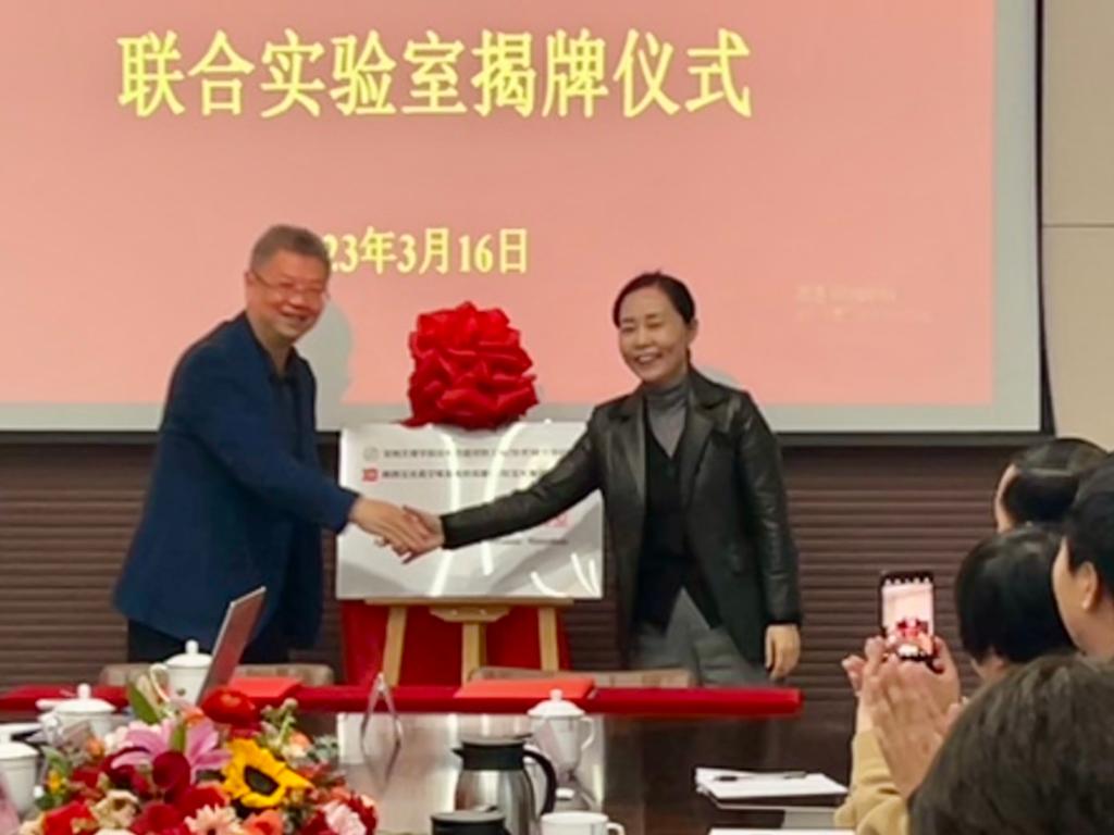 李景宜与李毅共同为先进陶瓷联合实验室揭牌。