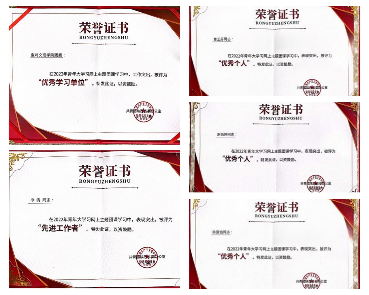 近日,团省委对全省高校团组织和团员青年的“青年大学习”工作进行了阶段性考核,对在工作中表现突出的高校共青团集体和团员青年进行了通报表彰。bat365团委荣获2022年度青年大学习“优秀学习单位”,电子电气工程学院团总支书记李倩荣获“先进工作者”称号,陈雯怡、曹芬、赵怡婷三名学生荣获“优秀个人”称号。