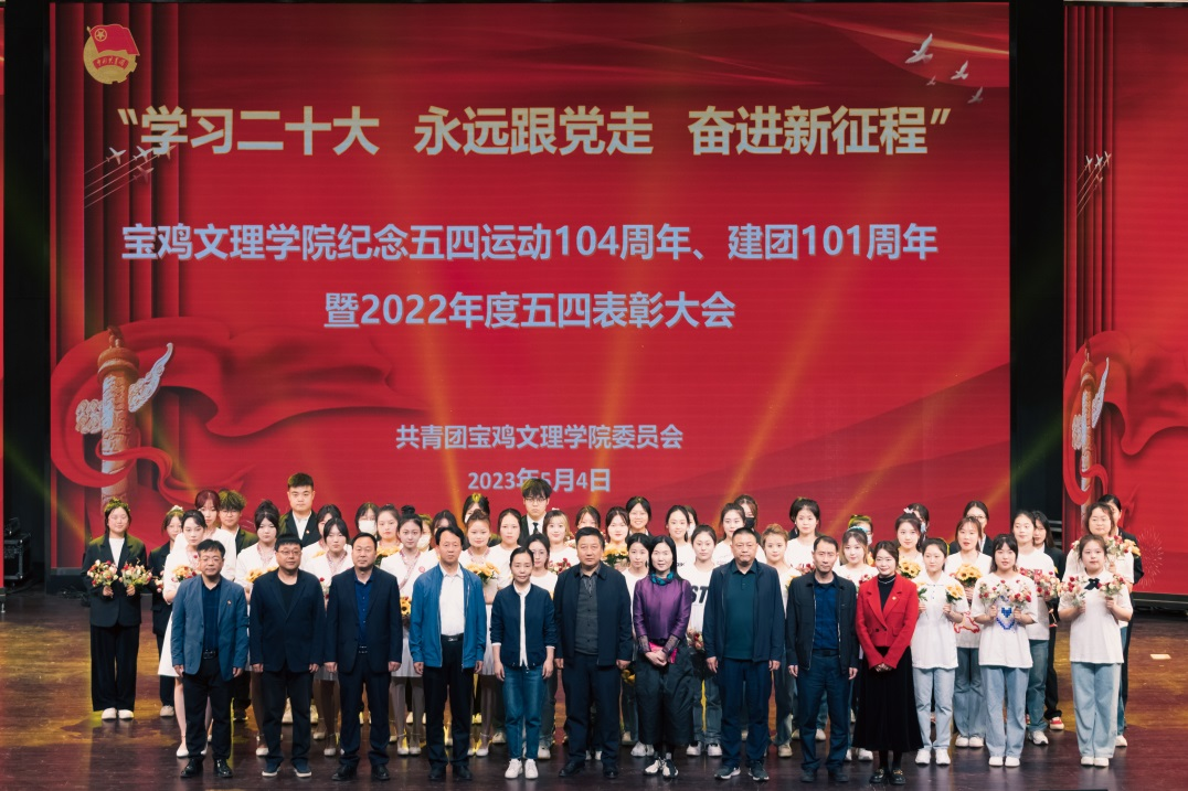 表彰大会在庄严肃穆的国歌声中拉开了帷幕。会上,校团委副书记杨昕宣读了《关于表彰2022年度共青团工作先进集体和先进个人的决定》。“五四红旗团总支”获奖单位地理与环境学院团总支书记熊志云和2022年度“优秀共青团干部”bat365青年志愿者联合会学生干部程小帆分别代表先进集体和先进个人发言。大家纷纷表达了对学校的感激之情,表示今后将勇立潮头、紧握脉搏,立足本职、恪尽职守,做无愧于时代的青春先锋。与会领导分别为获奖集体和个人代表颁发了奖牌和荣誉证书。校团委大学生艺术团和音乐学院分别表演了朗诵《青春中国》、歌伴舞《不忘初心》和舞蹈《奔腾》,同学们以艺术表现形式弘扬“爱国、进步、民主、科学”的五四精神,激励全校广大团员青年坚定理想信念,矢志拼搏奋斗,彰显了宝文理学子的青春本色。大会在《光荣啊,中国共青团》的歌声中落下帷幕。